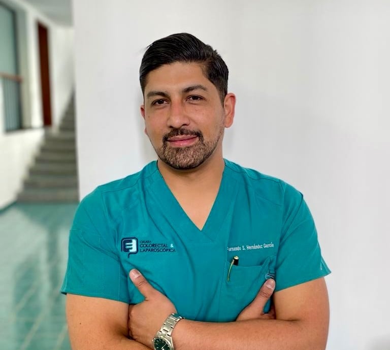 El Dr. Fernando Santiago es médico cirujano por la Universidad Autónoma de Guadalajara (UAG), con especialidad en Cirugía General por el Hospital Juan Graham Casasus en Tabasco y subespecialidad en Coloproctología por el Hospital Civil de Guadalajara “Juan I. Menchaca”, una de las instituciones más reconocidas a nivel nacional.